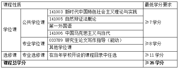 注:研究生论文写作指导(能动)必修课程,同时还必须修完:1门全英文课程、1门跨一级学科课程。